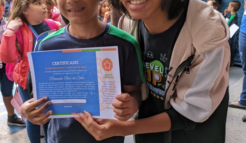 A ocasião foi ainda mais marcante com a entrega dos Certificados de Destaque do 2º bimestre, que reconheceram o esforço e a excelência acadêmica. Cada certificado representa horas de estudo, superação e o desejo constante de aprender. Ver o brilho nos olhos dos estudantes e a alegria de suas famílias nos encheu de orgulho.